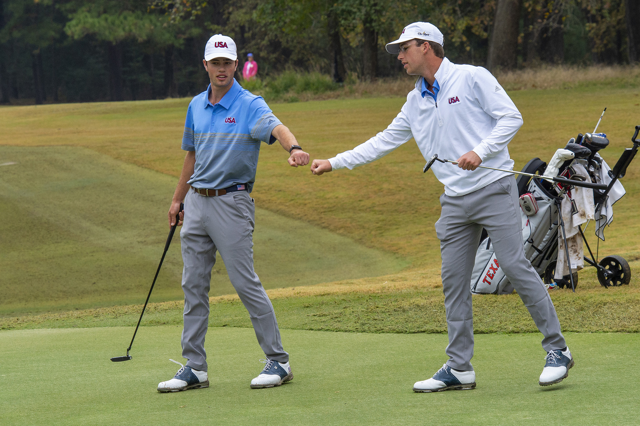 Team USA’s Cole Hammer and Andy Ogletree rallied late to win the Men’s Championship. Hammer, the third-ranked men’s amateur in the world and a sophomore at Texas, caught fire down the stretch and jarred five birdies in the team’s final eight holes to finish at 22-under 194. Hammer, who grew up about 80 miles south of Whispering Pines in Houston, also finished second and received a silver medal in the Men’s Individual Championship with 16 total birdies.