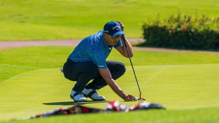 Corey Kozuma carefully lines up his birdie putt during the final round of the 2025 Golf Concepts Pro-Pro Championship at Pearl at Kalauao. (Photo: Aloha Section PGA)