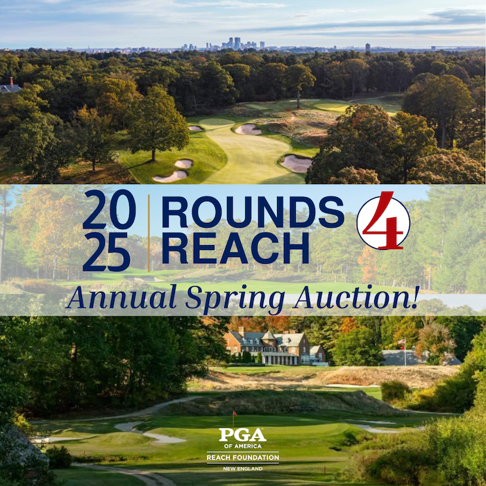 BOYLSTON, Mass. – The New England PGA Section is set to launch its annual Spring Auction to benefit the PGA REACH New England Foundation on Friday, April 18, 2025. The auction, which runs through May 9th, allows anyone to bid on one-of-a-kind golf experiences at top-end facilities around the regions, including The Country Club, Boston Golf Club, The Bay Club, Vineyard Golf Club, and many more!