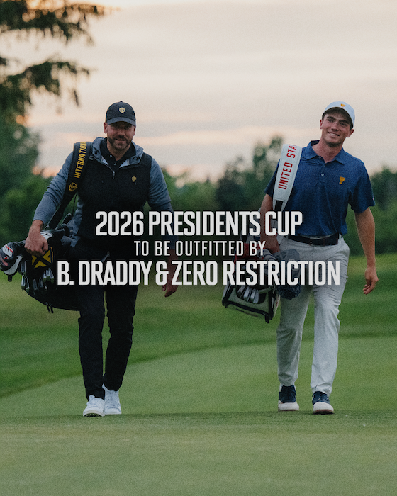 B. Draddy is an American sportswear brand known for blending heritage with modern performance, and Zero Restriction, the leader in premium technical golf outerwear, extends a decade-long involvement with the Presidents Cup, delivering performance designs built for any conditions.