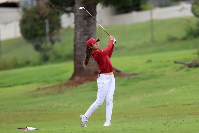 USC’s Jasmine Koo watches her approach shot on March 17, 2026 at Pearl at Kalauao in ‘Aiea, Hawai‘i.