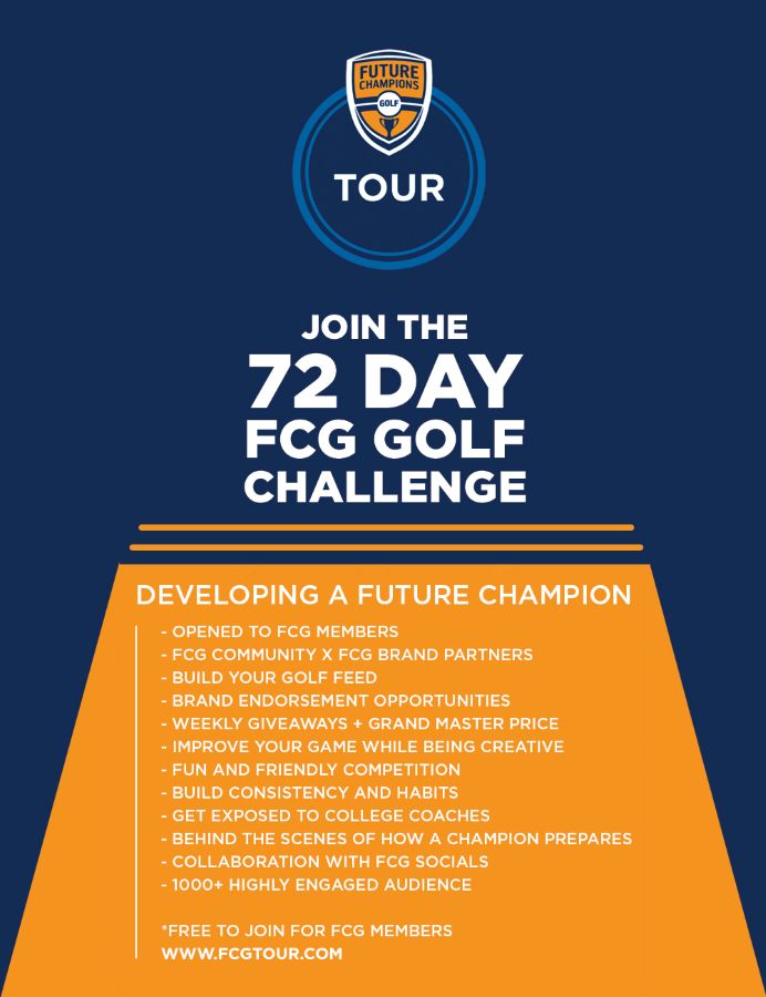 Challenge Dates: September 1, 2025 – November 11, 2025 Purpose: A 72-day development challenge designed to grow young golfers’ skills, mindset, and competitive edge. Sponsors will receive ongoing exposure through FCG’s social media channels, weekly giveaways, and a grand prize feature.