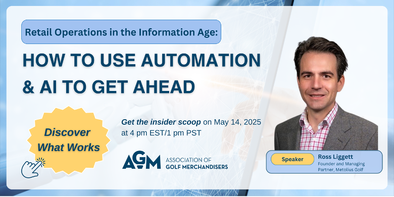 Rocklin, CA – This May, the Association of Golf Merchandisers (AGM) is thrilled to present a dynamic series of webinars designed to help golf retail professionals spark meaningful connections, embrace new technologies, and refine customer experiences at every touchpoint.