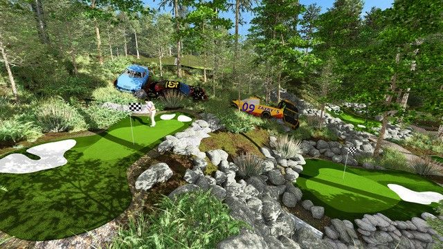 THE GRAVEYARD is conceived as a compact, playful 9-hole pitch & putt that channels a vintage race-car graveyard aesthetic. Modeled as a creative nod to Dale Earnhardt Jr.’s car graveyard motif, The Graveyard will incorporate curated hardscape and sculptural elements inspired by racing (used as visual inspiration rather than an endorsement). The feature is intended to be high-character and whimsical while also providing a challenging game — the kind of themed short-game attraction that turns practice into an immersive social moment and photo opportunity.