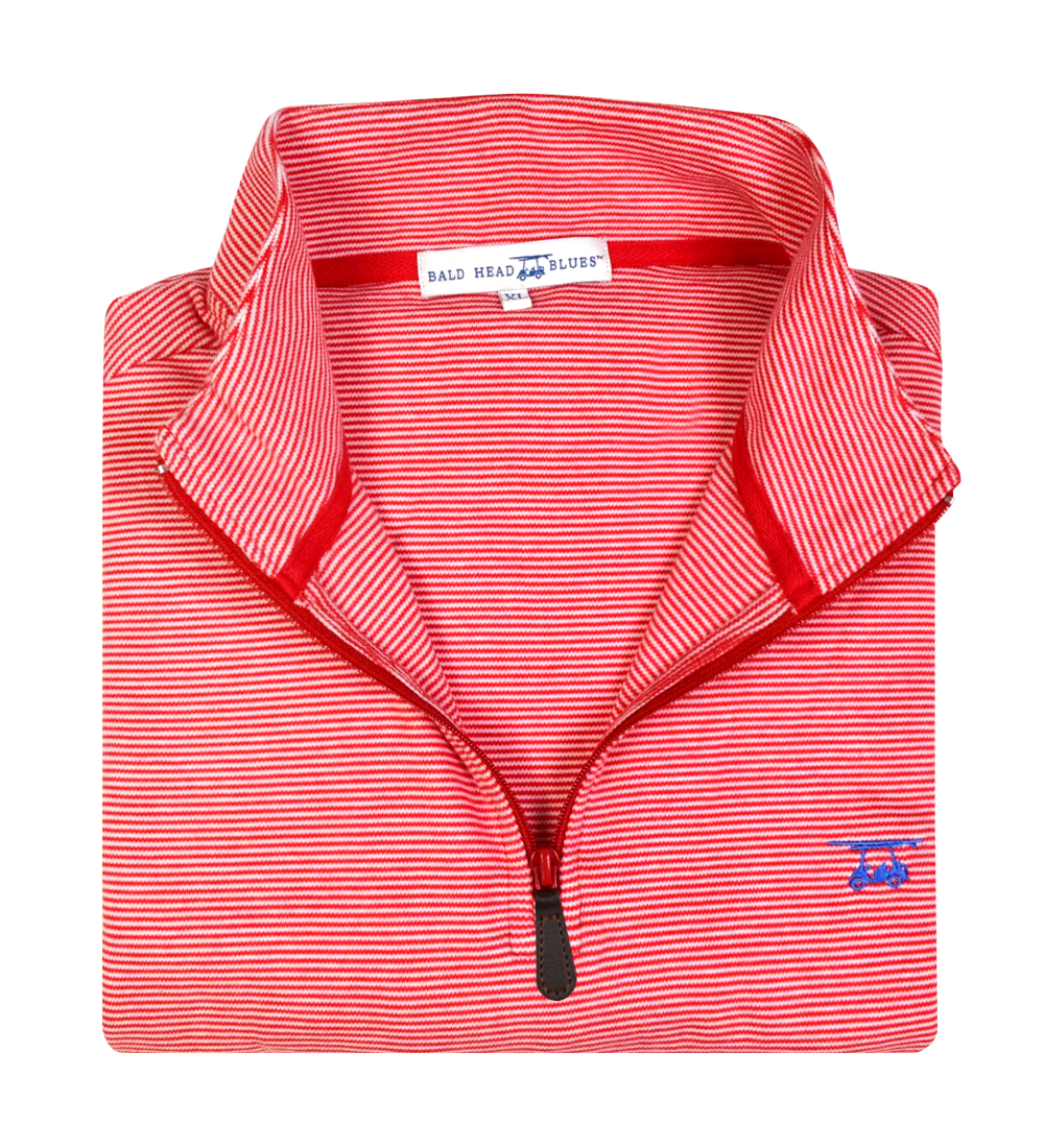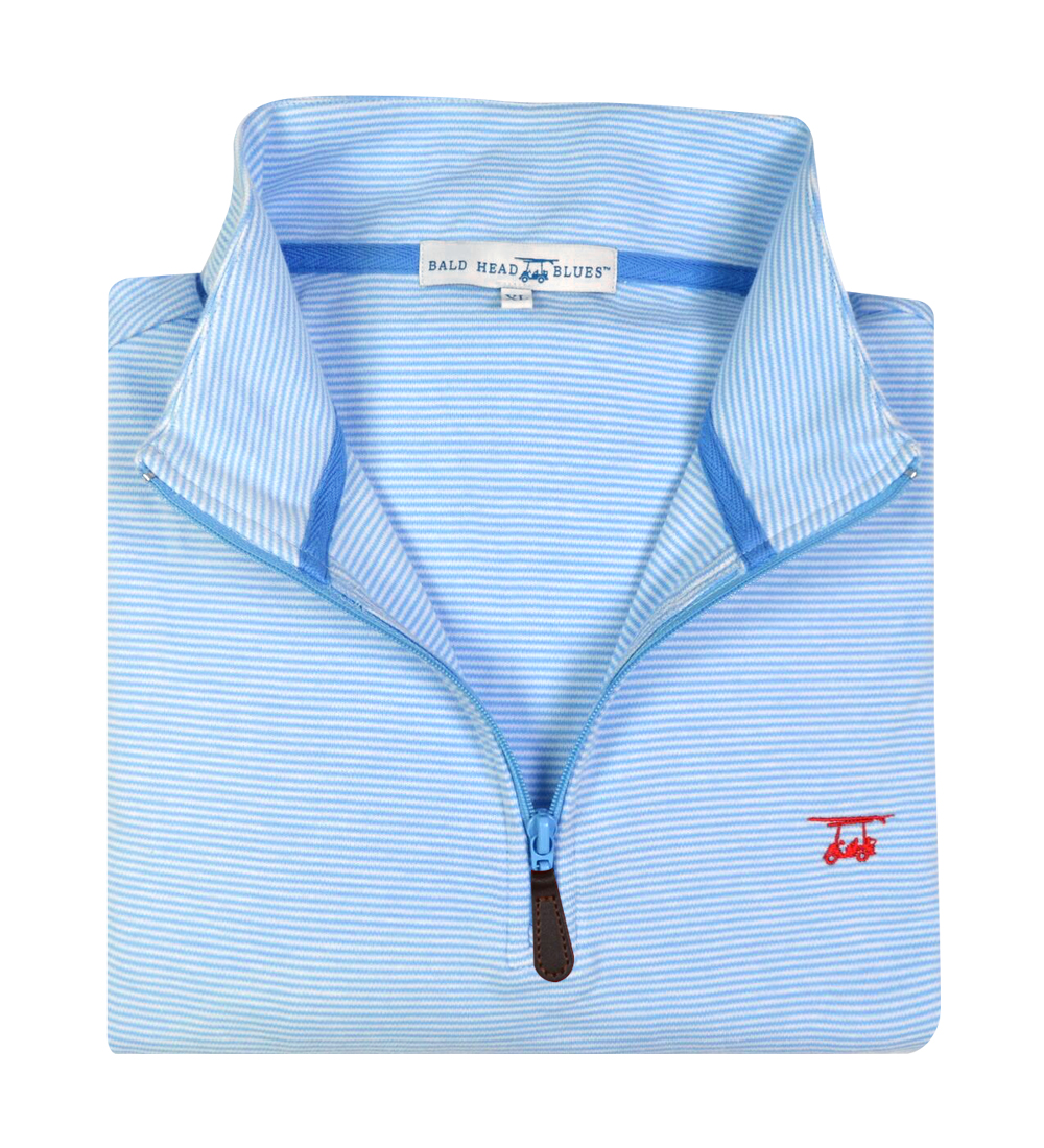 Bald Head Blues, a golf and island inspired apparel company distinguished by its golf cart with surfboard logo, is proud to announce that the company has added NEW Striped Clubhouse Quarter Zip Pullovers to their wide variety of outer layers and just in time for the holiday season.