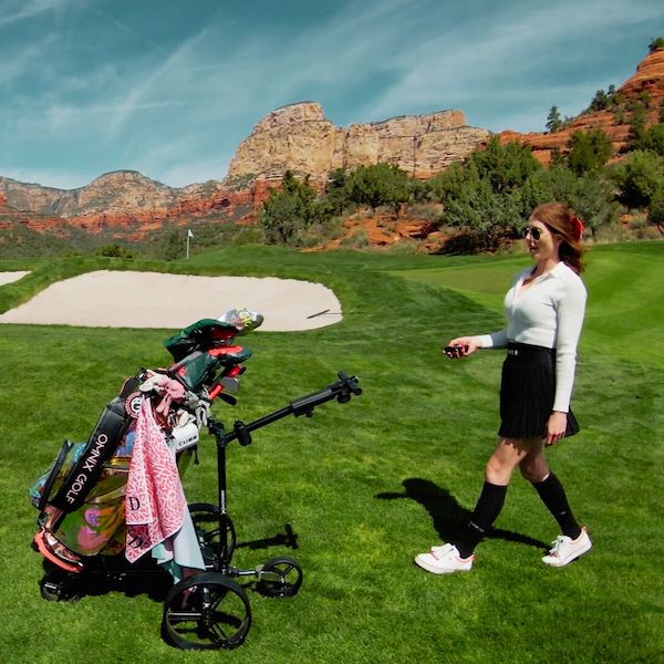The EVO Remote weighs in at an industry leading 19.5lbs alongside a 3lb battery. That is up to 40% lighter than the competition. It also packs down to less than 4” high so you can place it behind the seat when you are done with your round! The EVO Series features three modes – Remote, Walk-Along, and Standard Pushcart, it also boasts Anti-Tip Assist, Intelligent Auto-Tracking, an Electro-magnetic Parking Brake, and Downhill Speed Control.