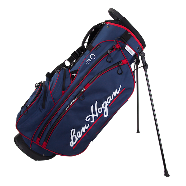 The 2020 Ben Hogan Golf Bag line includes the existing BH1 stand bag which has long been a favorite of golfers who usually carry their bags yet ride on occasion . Light enough to carry comfortably for 18 holes, but offering plenty of storage for those who ride and want their gear with them at all times, the bag features seven zippered pockets – including a Velour lined waterproof valuables pocket, a waterproof garment pocket, and Velour lined range finder pocket, among others – for the ultimate in organization, whether strapped on a cart or standing upright on the retractable legs. The stand bag, which weighs 6.6 lbs. and is available in four (4) blue and white color schemes with red accents, is highlighted by a 5-way top, full length dividers and a dual strap harness. The price of the BH-1 stand bag is $150.00.