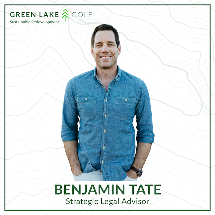 PHOENIX – Arizona-based Green Lake Golf (GLG), the industry leader in sustainable golf course redevelopment, is pleased to announce the engagement of Benjamin Tate, land use attorney and Partner at the firm Withey Morris Baugh, as a Strategic Advisor to coordinate all legal efforts related to rezoning, land use entitlements and permitting for the company’s golf course redevelopment projects.