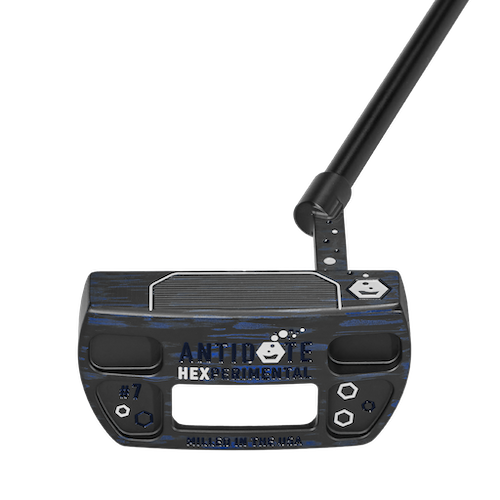 The Hexperimental #7 features a compact mallet profile with a ball-sized rectangular cutout that shifts massto the perimeter for added stability and alignment, while the Hexperimental #9 is a high-toe, traditional wide-body blade design. Both models share a modified plumber’s neck with minimal onset, delivering the look and feel of a traditional heel-shafted putter, now with zero torque.