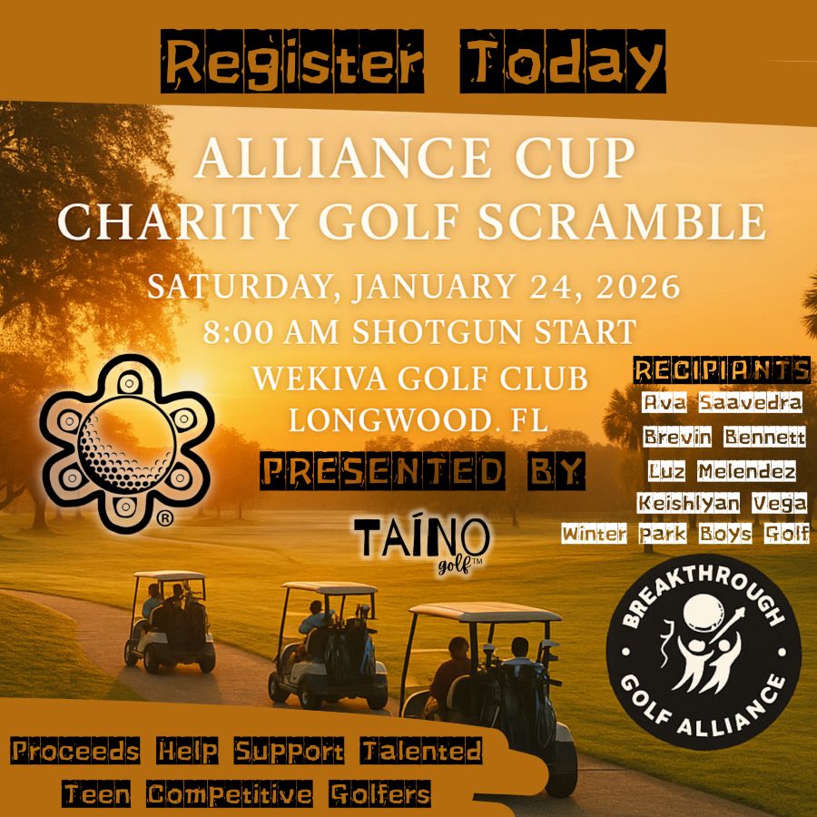 LONGWOOD, FL – The Breakthrough Golf Alliance, formerly known as the Little Linksters Association for Junior Golf Development, is proud to announce its inaugural Alliance Cup Charity Scramble, presented by Taino Golf, on Saturday, January 24, 2026, at Wekiva Golf Club in Longwood, Florida. This landmark event will kick off a year-long journey of support for five exceptional young golfers who have been selected as 2026 scholarship recipients.