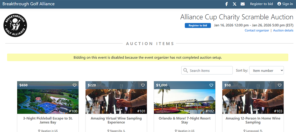 LONGWOOD, FL – The Breakthrough Golf Alliance, formerly known as the Little Linksters Association for Junior Golf Development, announces the opening of its online auction held in conjunction with the inaugural Alliance Cup Charity Scramble. The auction runs from Friday, January 16, 2026, at 12:00 PM Eastern through Monday, January 26, 2026, at 5:00 PM Eastern.