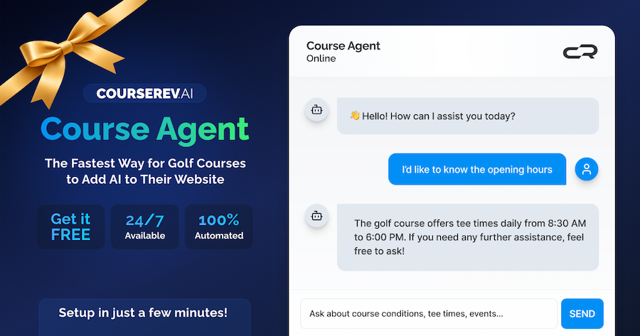 Charlotte, NC – Courserev.ai, a leader in AI solutions for the golf industry, today announced the launch of Course Agent, a simple, easy, instant-setup version of its popular AI Chat platform designed specifically for golf course websites.