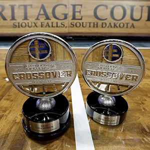The team at Malcolm DeMille has a long history in prize innovation. This pioneering spirit brought the Crossover Classic calling this last fall. They were looking for a way that allowed teams to bring home a piece of their unique Heritage Court. The result is a one of a kind trophy featuring the tournament’s logo and parquet flooring to match the unique retro hardwood court.