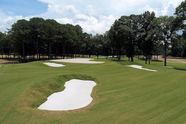 “Their greens were well beyond their expected lifetime, the irrigation system needed to be replaced, and the course suffered from poor drainage on many holes. It was time for a major renovation. In determining the scope of work, we recognized that while we were tackling these items, we could give the golf course an entirely new look and identity. Our goal was to design a “golden age” golf course that would function well for the next 30 years or more,” said Bill Bergin. Greenside and fairway bunkers were rebuilt with 41,500 square feet of Better Billy bunker liner and Tour Angle sand installed to improve maintainability and playability. Several putting green complexes were relocated and others rebuilt to USGA standards to enhance shotmaking and maintainability. Greens were sprigged with TifEagle Bermuda. New laser graded tees were added throughout the course to add a new dimension of playability and shot making opportunities. All fairways were graded to improve surface drainage and re-planted with Tiftuf Bermuda. The renovation also included the addition of a new 650 head Toro irrigation system, pump station, and pond intake.