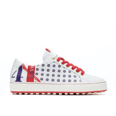 For Women, the chic ESTI sneaker-style shoe is packed with different design graphics including a fabric strap embossed with ‘love’, the number ‘4’, plus a Duca del Cosma branded ‘tee peg’ to offer something distinctively different from any other shoe on the market. Available in Navy, White and Red colorways, the shoe is guaranteed to catch the eye of playing partners on the first tee. The fashion-forward Airplay VIII two-tone outsole offers a bold look and ensures ultimate grip and stability.