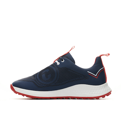 The athletic TOMCAT shoe leads the styles in the extended men’s collection with a predominantly Navy outer and White midsole combined with a daring Red Airplay XII outsole made from recyclable rubber to deliver a superb modern look. The shoe has 2-Way-Twist triangular nubs built into the pivot point for an extra smooth transition in the swing, while cone-shaped nubs ensure optimum grip in all-weather conditions.