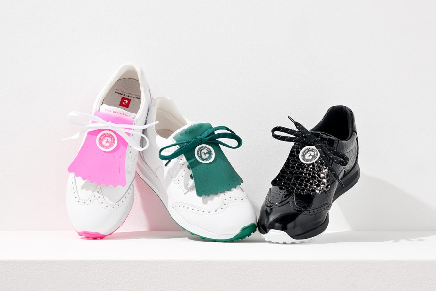 While classically styled, the BELLEZZA 2 embodies Duca del Cosma’s distinct European flair with eye-catching new color combinations of White/Pink, White/Green and Black/Croc. Each pair comes with interchangeable kilties to add an extra special touch for golfers wanting their personality to shine both on and off the course.