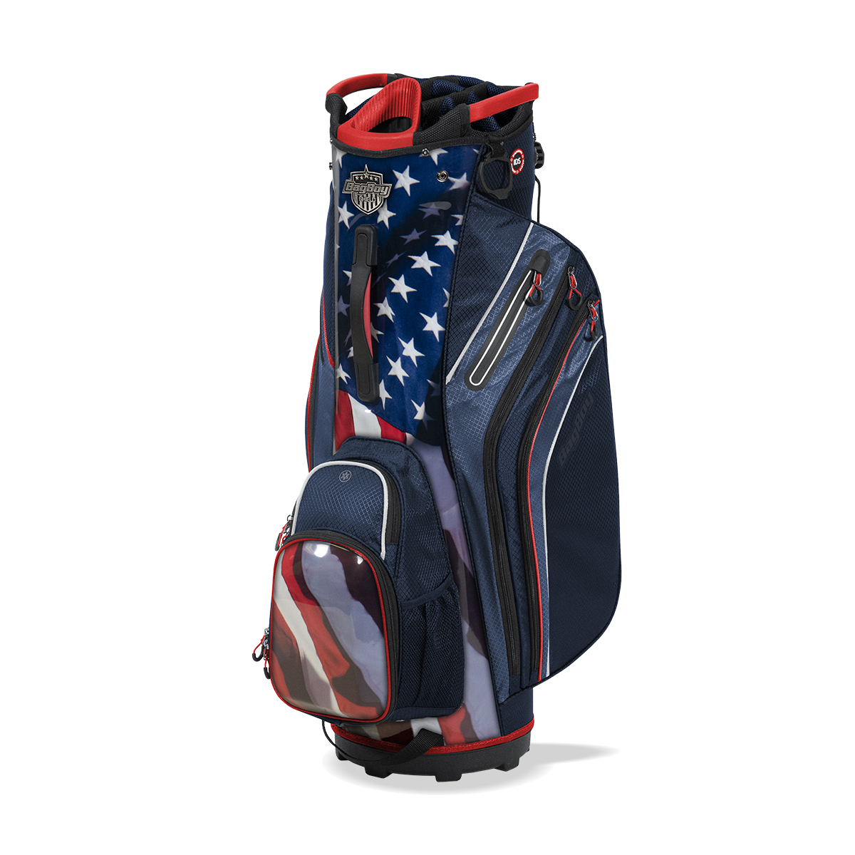 Bag Boy is also releasing a limited-edition USA cart bag and hybrid stand bag, available spring 2020. These bags both have a patriotic print and come with Top-Lok technology. The USA cart bag has a 15-way organizer top with dedicated putter well, while the USA hybrid stand bag comes equipped with a swivel clip attachment system for easy shoulder strap separation.