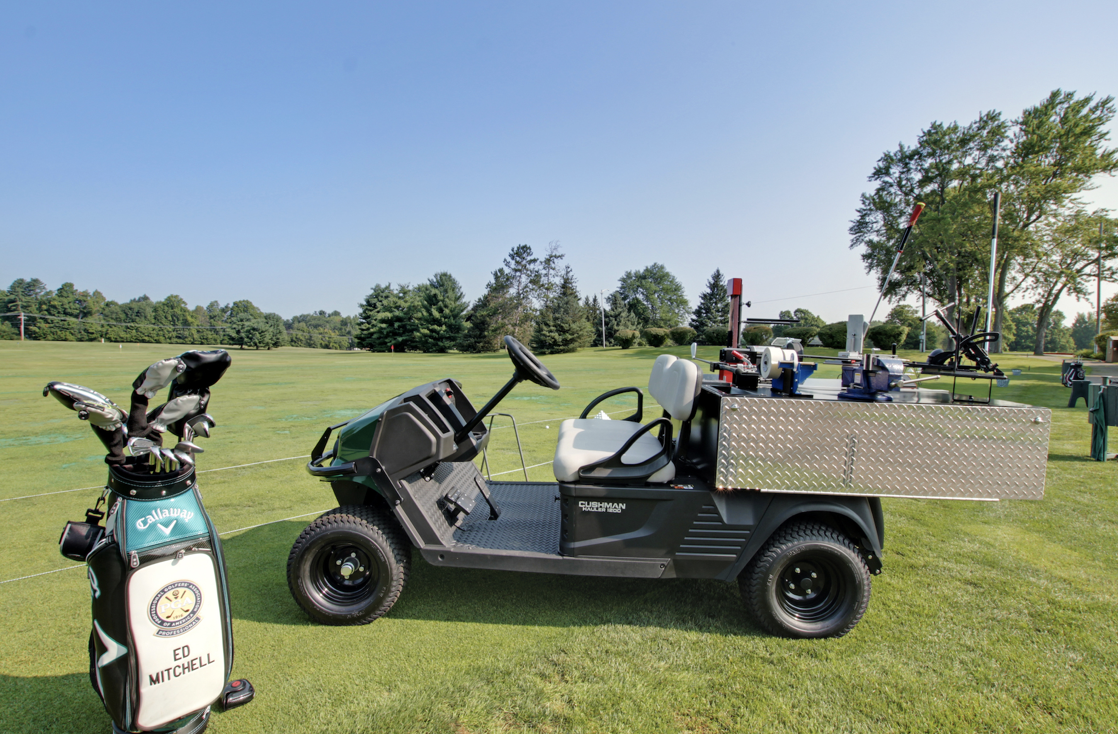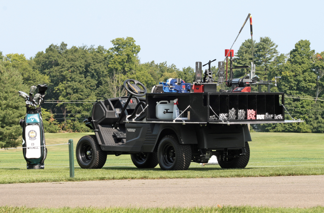 Ed Mitchell Technologies introduces its Mobile Club Repair Cart. A Custom Club Repair Box is built on a Cushman Hauler Pro 1200 gas utility cart. It provides space to re-grip, adjust loft and lie angles on full swing clubs & putters, check swing weights, club lengths & shaft frequency and to re-shaft any golf club. A complete set of clubs can be built from this unit.