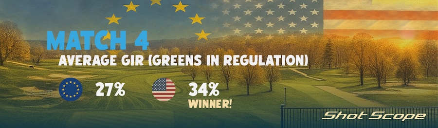- Data: 6 per round vs 5 per round – Team USA averages 34% GIR per round versus Team EUR’s 27%. Stronger iron play leads to more birdie chances.