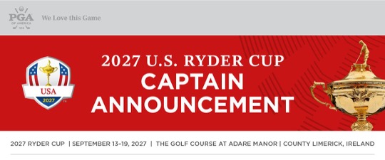 FRISCO, Texas – The PGA of America today announced that Jim Furyk will serve as Captain of the United States Ryder Cup Team for the 46th Ryder Cup, to be played September 13-19, 2027, at Adare Manor in Limerick, Ireland.