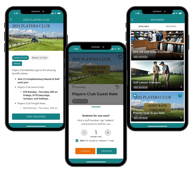 - Flexible offering types — Clubs can launch monthly or annual memberships, prepaid round packages, simulator memberships, development programs, range pass subscriptions, and more.