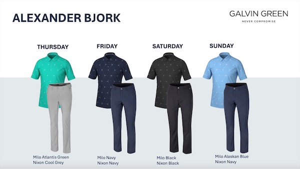 Alexander Björk, who has played in Galvin Green apparel since turning Professional in 2009, will be looking to build on his best major finish of tied 17th at Hoylake last year wearing the sporty MILO shirt inspired by nerve signals connecting the human mind and body. The Swede will also wear the NIXON pants in three colors – Cool Grey, Navy and Black.
