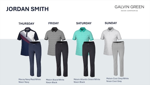 Jordan Smith comes into the final men’s major of the year in hot form and will start the week in the distinctive MACOY shirt in Navy/Red/White on Thursday, followed by the striking MELVIN style in Black/White (Friday) and the vibrant Atlantis Green (Saturday) and Cool Grey/White (Sunday) colors. The mechanical stretch NIXON trousers, available in an unmatched choice of 16 different size options, complete Smith’s outfit choices for his tenth major championship appearance.