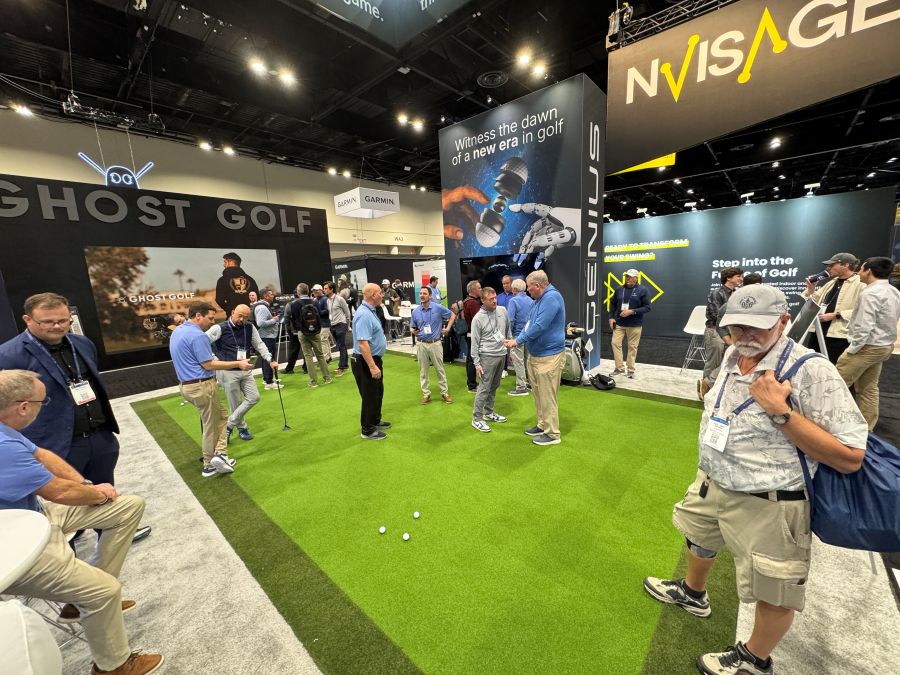 Amid a booth that was packed from the show floor’s opening to close, Schwab received putting tips from two-time PGA Championship winner Dave Stockton, Sr., along with his fellow acclaimed putting coaches and sons Dave, Jr. and Ron. All three Stocktons heavily contributed to GENIUS’s groundbreaking technology.