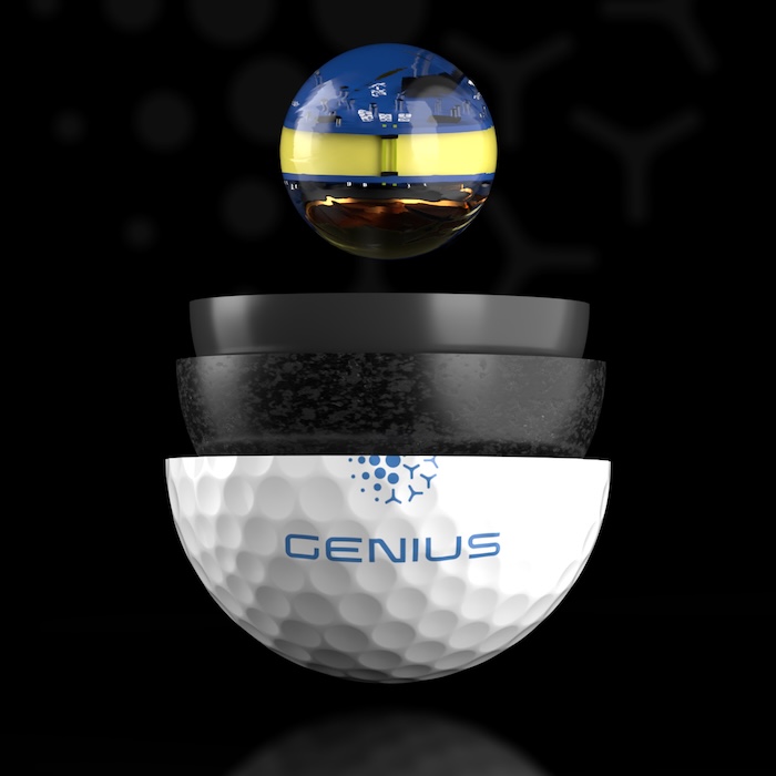 Benefitting golfers of all abilities and PGA coaches, GENIUS is the only regulation-size, regulation-weight smart golf ball that looks, feels and rolls like a premium, Tour-quality ball. Its core contains a sophisticated sensor array that identifies the moment of impact, plus skid and roll of the ball, resulting in precise data that external devices cannot reliably detect.