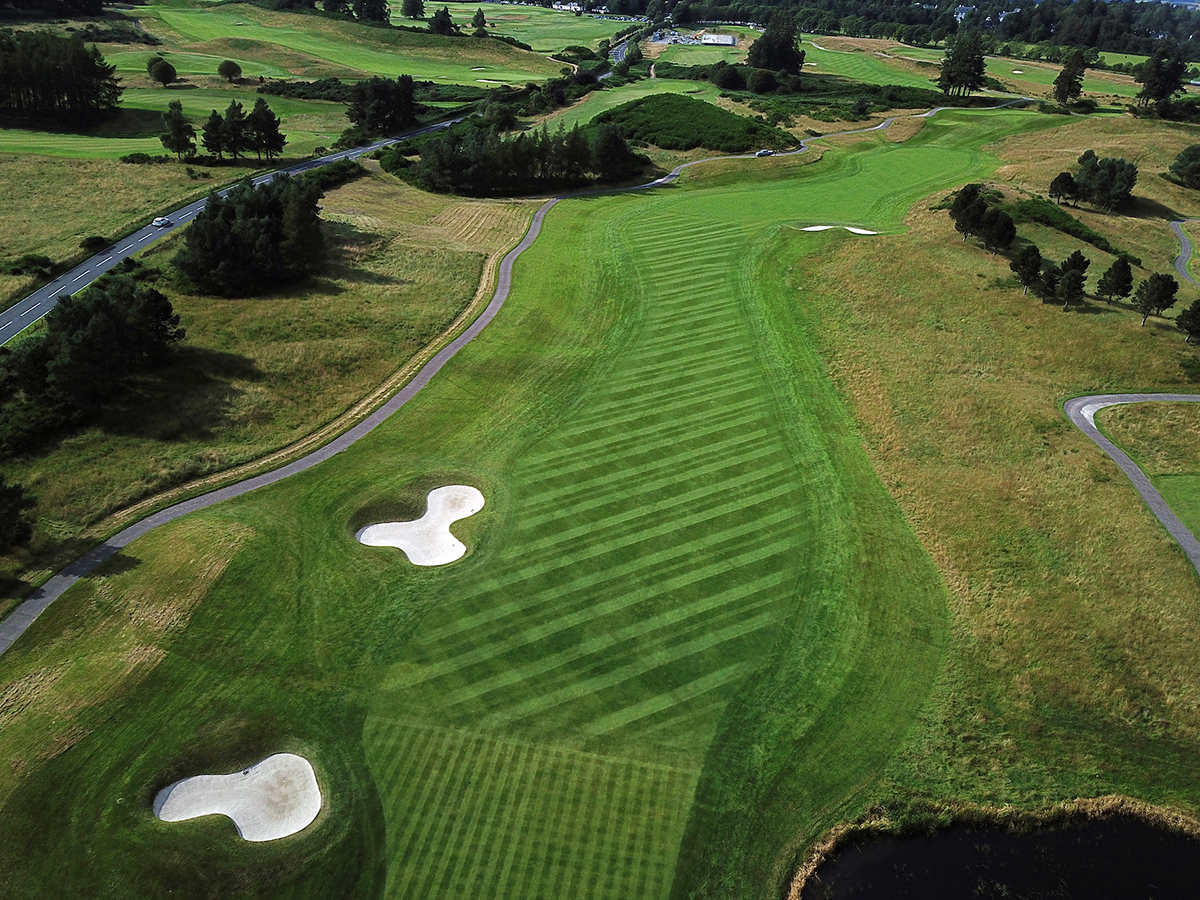 In a special ‘creative takeover’ of the 2nd hole on the Jack Nicklaus-designed PGA Centenary Course, greenkeepers have transformed the pristine fairways of the iconic par 5, 516-yard hole into a carpet of tartan with a painstaking, four-hour cutting makeover!