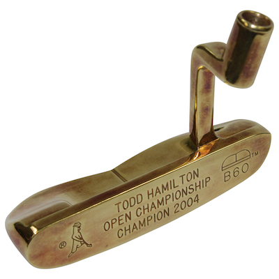 Other collectibles of note include: Tiger Woods autographed driver, Bobby Jones autographed driver, young Tom Morris long nose putter (used from 1868-1872) and 2004 Open Championship winner Todd Hamilton’s solid gold PING B60 putter head.