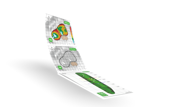The topographical guides include three views of every hole. Quick-view heat maps outline the green’s undulations and provide large, easy-to-see arrows which help golfers identify the areas to avoid when planning approach, pitch, and chip shots. Using these amazing course management features will provide more straight, uphill birdie putts and stress-free pars. A second, close-up perspective of the green highlights the subtle changes in elevation and direction that are often undetectable to the naked eye. Combined, the maps help make every putt read quick and simple, and virtually eliminate the 3-putt.