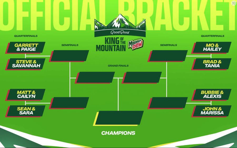 King of the Mountain participants include Good Good favorites Garrett Clark, Brad Dalke, Matt Scharff, Stephen Castaneda, Bubbie Broders, Big Mo, Sean Walsh, John McCarthy, plus special guests Paige Spiranac, Cailyn Henderson, Hailey Ostrom, Marissa Wenzler, Tania Tare, Savannah Carlson, Alexis Miestowski, Sara Winter. Participants are subject to change.