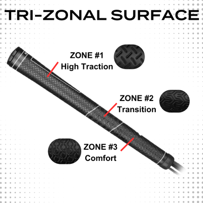 Each Karma Softy Grip incorporates a Tri-Zonal surface, offering varying levels of traction tailored to different parts of the grip: