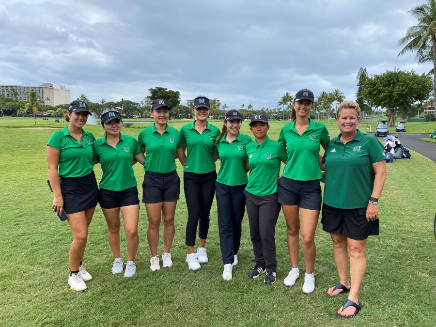 The University of Hawai‘i women’s golf team poses for a photo after the 2025 Dr. Donnis Thompson Invitational on Royal Kā‘anapali.