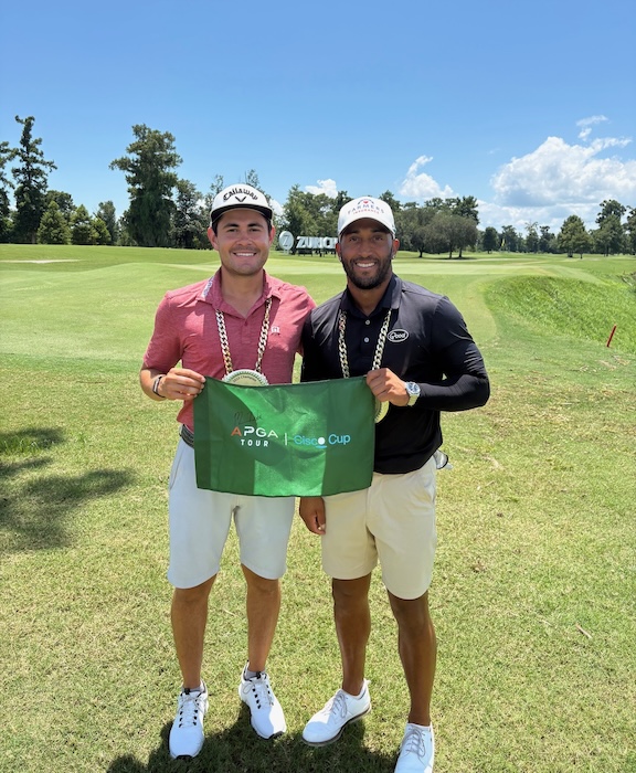 The team of Hobe Sound, Florida resident and Rwanda native John-Baptiste Hakizimana and Troy Taylor II, a Westerville, Ohio native and Michigan State graduate, finished as tournament runner-up from the 14-team field with a score of 8-under 136 over the regulation 36 holes. Like Gagne-Mack III, they checked into the clubhouse with a first-round 8-under 64 on Wednesday. But they could not get much going and keep pace with Gagne-Mack III following a 72 on Thursday that included just a pair of birdies (on the par-4 fourth and 10th holes).