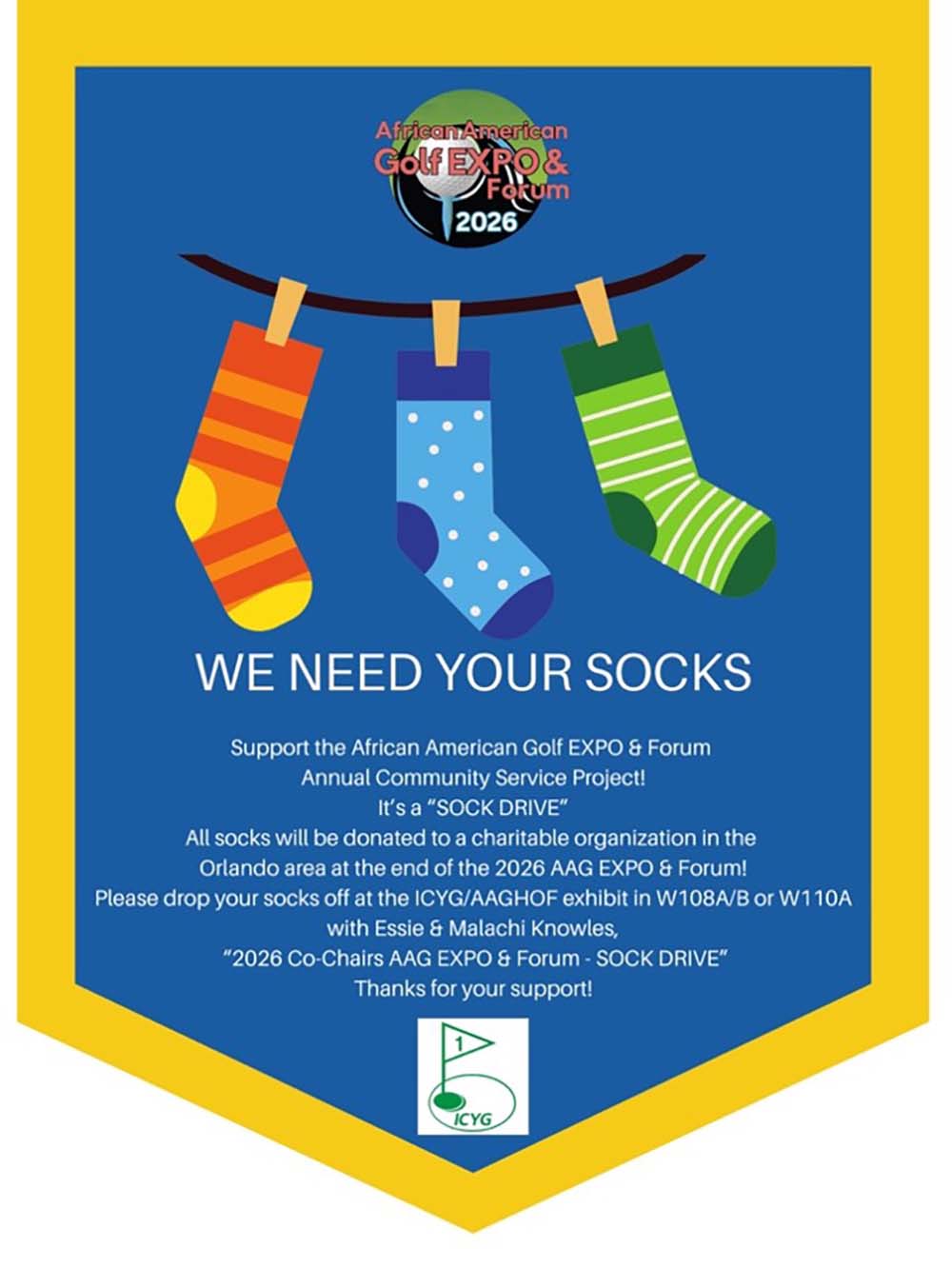 Their efforts have highlighted the achievements of African American golfers and fostered a greater appreciation for diversity within the sport. An historic example in many ways, Mr. Knowles is the Founder & President of Inner-City Youth Golfers’, Inc. (ICYG) and a member of the Palm Beach County Sports Hall of Fame. Essie is Executive Director of ICYG. Attendees to the EXPO are encouraged to bring and donate socks which will be donated to the homeless in the Orlando area. This is the second year of the sock drive program with over 200 pair having been donated to the Salvation Army in the first year of the program.