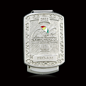 The Arnold Palmer Invitational and Malcom DeMille have continued the tradition of bringing unique, handcrafted, player badge money clips to the pro-am participants. Players could be seen sporting these money clip badges on their belt or pocket throughout the tournament.