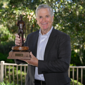 Malcolm DeMille proudly congratulates Peter Jacobsen on receiving the prestigious Bruno Award, presented annually by the PGA TOUR Champions Advisory Council to honor individuals or organizations that have made outstanding contributions to the PGA TOUR Champions.