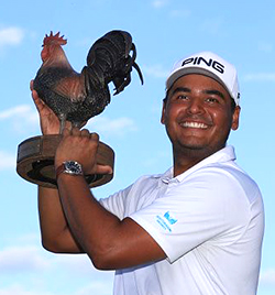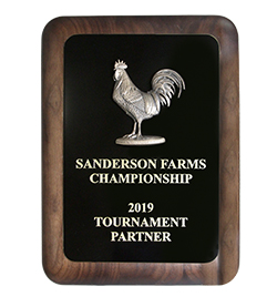 After an exciting playoff against Sungjae Im at the Sanderson Farms Championship Sebastián Muñoz won his first PGA Tour event! The lucky Champion took home “Reveille” the spirited rooster sculpted and handcrafted by Malcolm DeMille. This iconic trophy is cast in bronze with fired colorful patinas to create its realistic appearance. While Champion Sebastián Muñoz took home a replica trophy, tournament partners were presented with plaques featuring a 2D sculpted bronze “Reveille”. The team at Malcolm DeMille is proud to create these exceptional awards for Sanderson Farms Championship and their partners, and these handcrafted pieces of art will undoubtedly be a “feather in the cap” for the recipients!