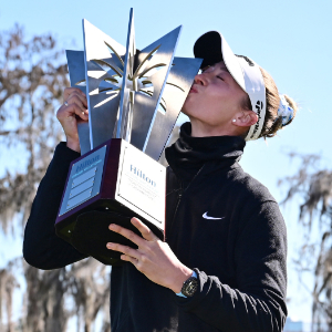 Both Korda and Fish lifted the event’s signature Malcolm DeMille designed trophy, featuring textured panels and open work palm trees that unite to form a three dimensional representation of the tournament logo. Finished in bright rhodium and standing over 20 inches tall on a hardwood base, the perpetual trophy includes a title plate and engraved plates honoring past champions.