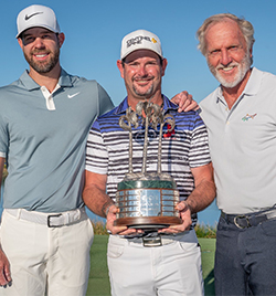 Malcolm DeMille Congratulates Kevin Tway and Rory Sabbatini on their Victory at the QBE Shootout
