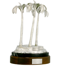 On Sunday at Tiburón Golf Club in Florida Kevin Tway and Rory Sabbatini were on fire in the better ball format catapulting them to triumph at the QBE Shootout. The pair received stunning sterling silver Palm Tree Trophies mounted to sleek green marble bases created by master sculptor Malcolm DeMille. These Commemorative Trophies will certainly provide lasting memories for champions Kevin Tway and Rory Sabbatini.