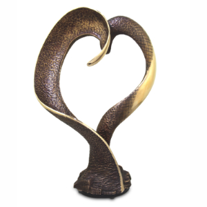 When Malcolm DeMille was briefed on the award’s details, it was clear that a heart would convey the importance of The Dinah! and lend itself to an imaginative award and art piece. The team sculpted a heart providing movement through shape, texture, artistically applied patina, and polished bronze. An inscription is mounted on the bottom of the award which honors the specific recipient.