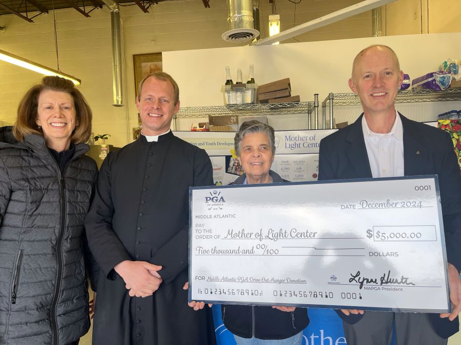 Stafford, Va. – The Middle Atlantic Section of the PGA of America (MAPGA) has announced a $5,000 donation to the Mother of Light Center. The donation is the second of two $5,000 installments made by the MAPGA in its annual Drive Out Hunger program. The first installment went to LINK, a 501c(3) non-profit organization that provides food and financial services to qualified people in need in the Herndon and Sterling Virginia communities.