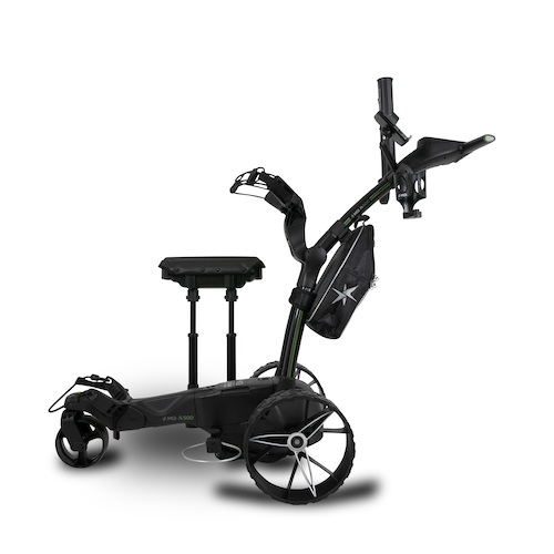 Beyond its advanced technology features, the Ai 500 is designed with user convenience in mind. Operating without a remote, the new model offers intuitive control through its easy-to-navigate interface. Weighing just 31.3 lbs, it features a single-action easy fold mechanism for effortless storage, a fourth foldable rear wheel for enhanced stability, and a controlled distance function for precise management on the course. The electronic parking brake and swivel-locking front wheel ensure superior maneuverability across varied terrains, while the Click & Go lithium battery system simplifies power management for seamless rounds on the course.