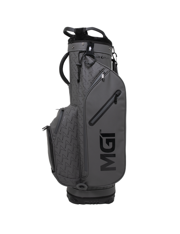 - MGI Lux-Play ($299) – Introducing the Lux-Play Bag, where luxury design meets enhanced craftsmanship. This bag promises a high-quality design and premium feel, elevating every round to a special occasion and engineered to deliver a superior golf experience. Features a 5-way top and PU Leather, this unique smaller cart bag is as stylish as it is clever. Available in Grey and Black.