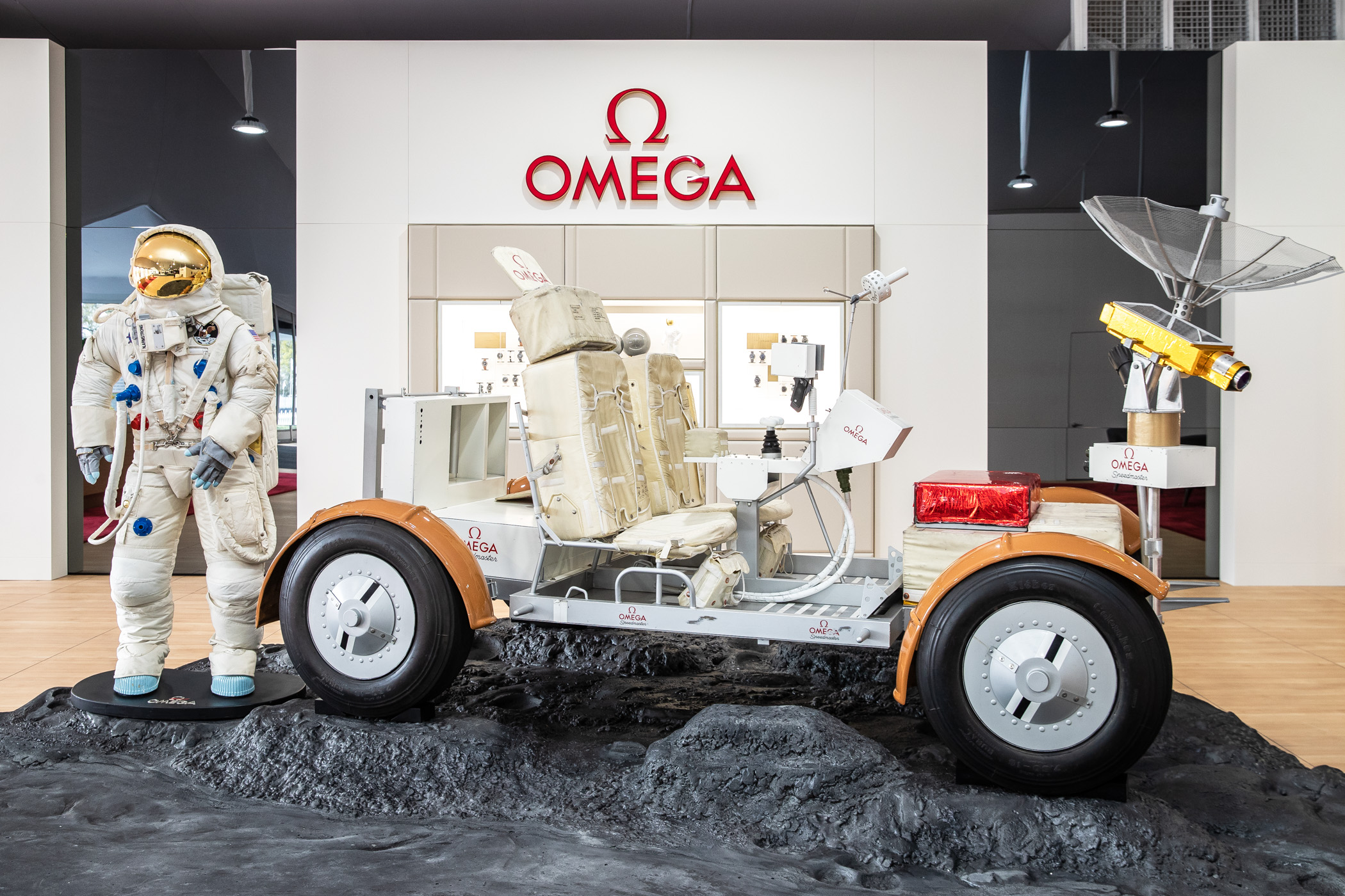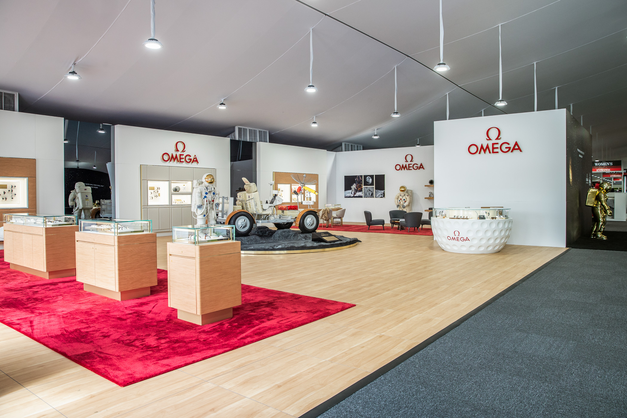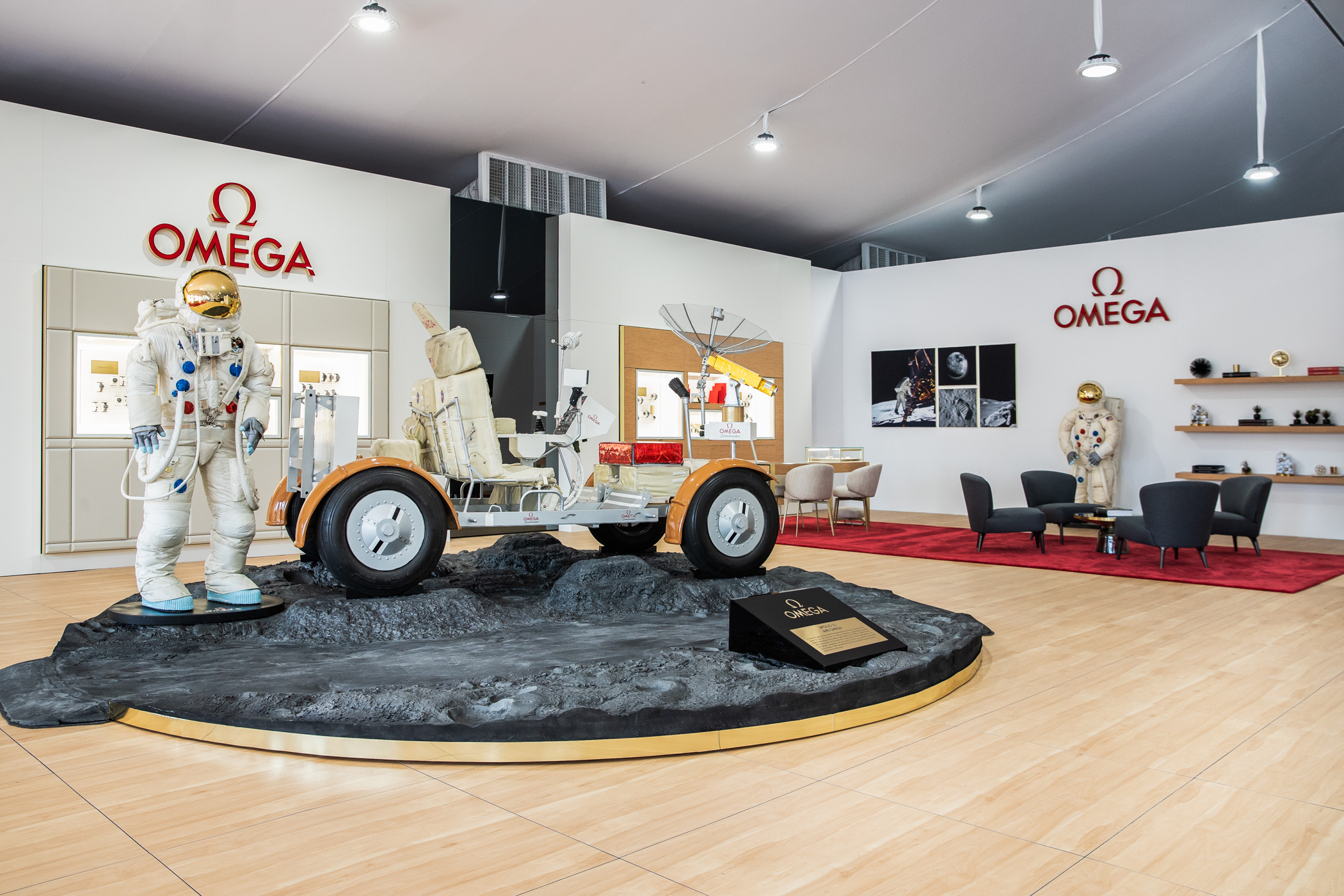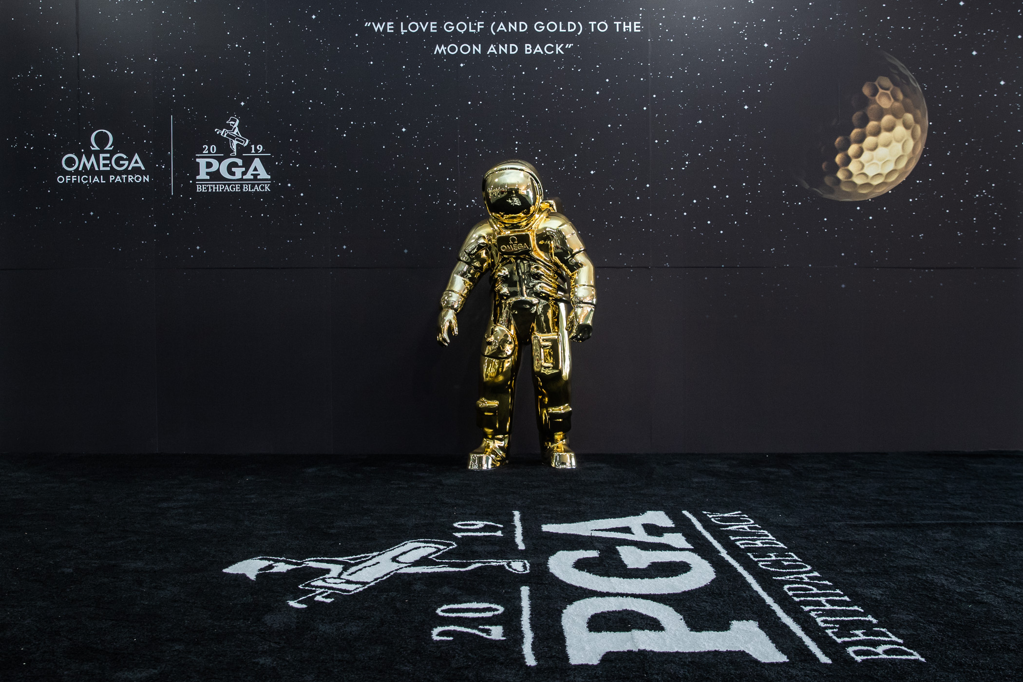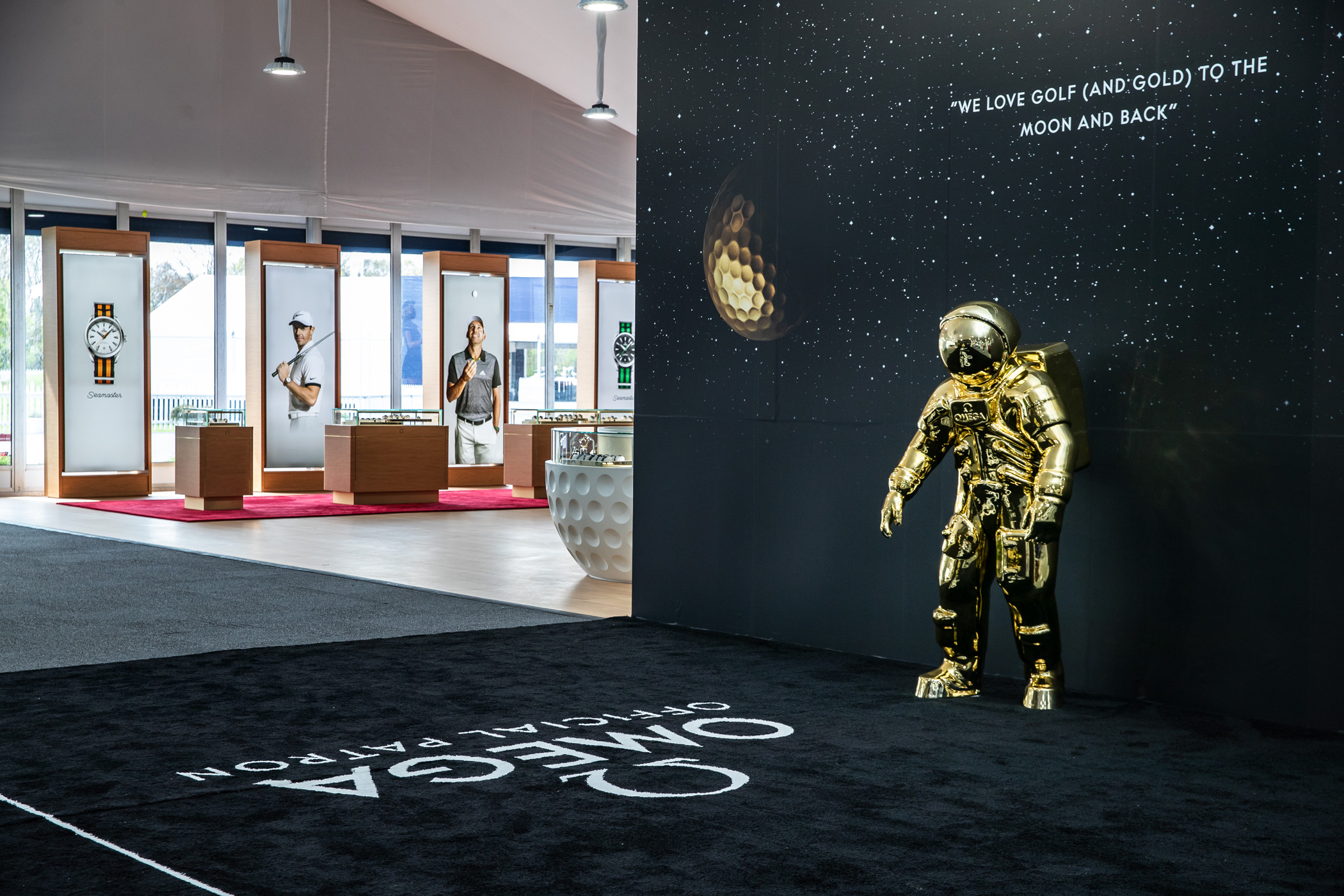 To celebrate this important milestone, OMEGA will feature two astronauts dressed in golden space suits who will greet spectators as they enter The Championship Shops. Spectators are encouraged to take selfies with the golden astronauts. In the center of The Championship Shops’ OMEGA Boutique, a lunar rover replica sits on a façade resembling the moon for fans to sit in and take photos.