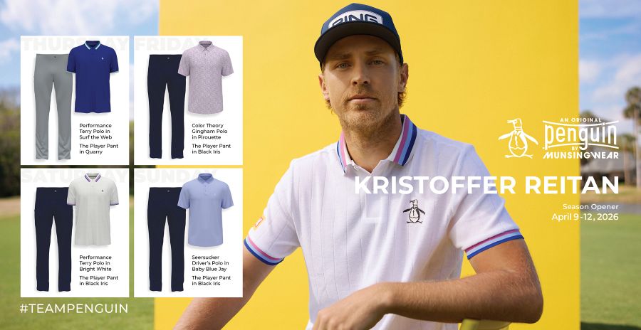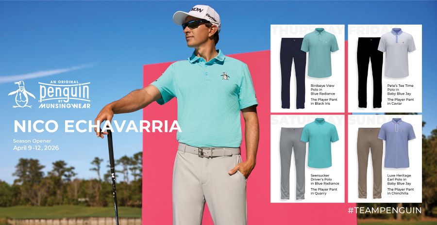 Blending heritage with modern performance, the scripting showcases Original Penguin’s signature mix of classic golf tradition and contemporary style. Each player will wear a lineup of performance polos and The Player Pant throughout tournament week, featuring lightweight technical fabrics, tailored fits, and the brand’s iconic Pete the Penguin logo.